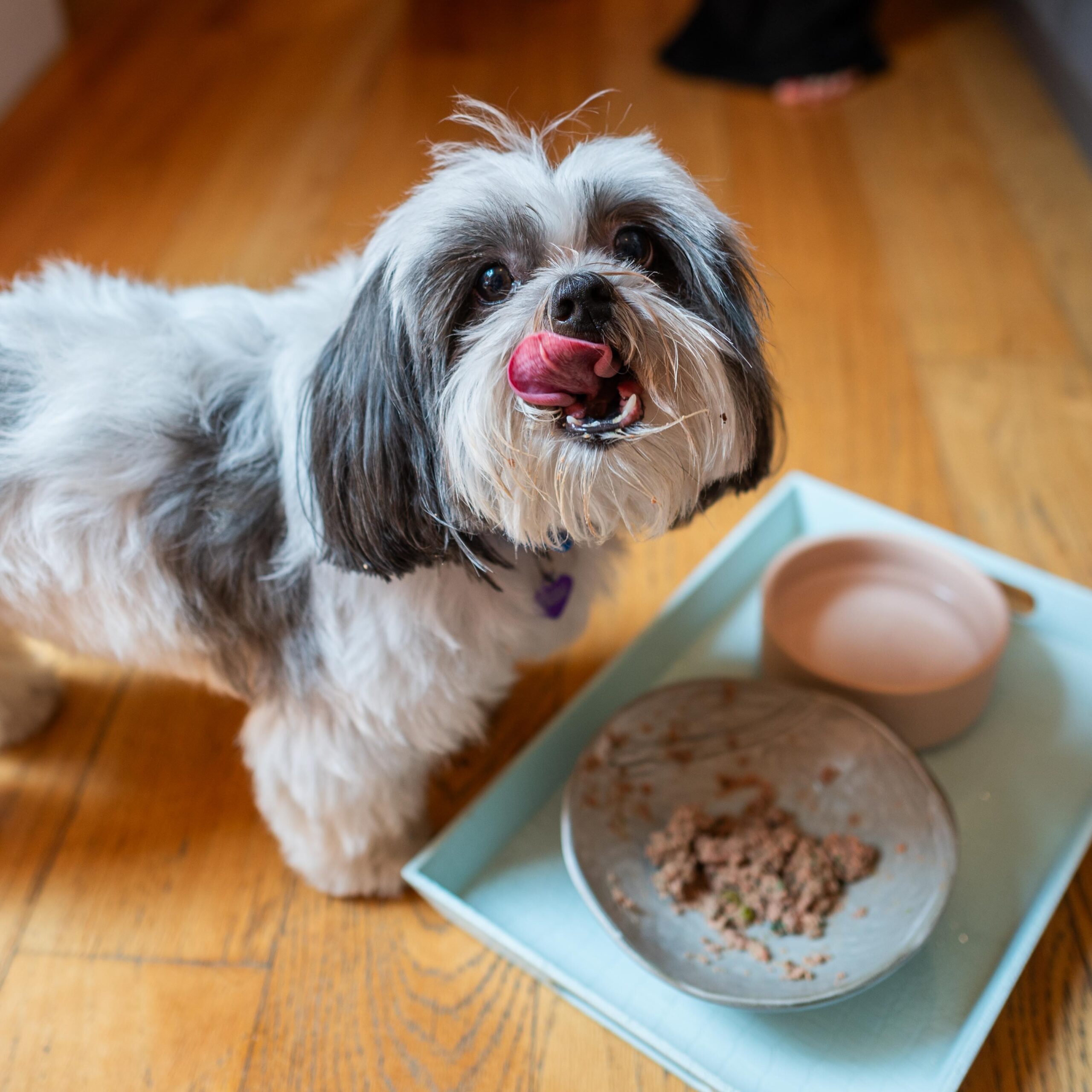 Raw dog food diets are considered biologically appropriate because of the dog’s ancestral behavior and anatomical features that persist to this day—namely the sharp pointed teeth and short digestive tract of a meat eater. Raw dog food models or methods include the BARF (i.e., biologically appropriate raw food) diet or PMR (i.e., prey model raw) diet. Both feature raw meat and uncooked bones, while BARF contains a small percentage of vegetables. If you’re interested in feeding a raw diet, consult a veterinarian who is well-versed in raw food diets to ensure your pup is receiving balanced nutrition. Additionally, conduct your own research and practice strict food handling safety measures to prevent dangerous food-borne illnesses.