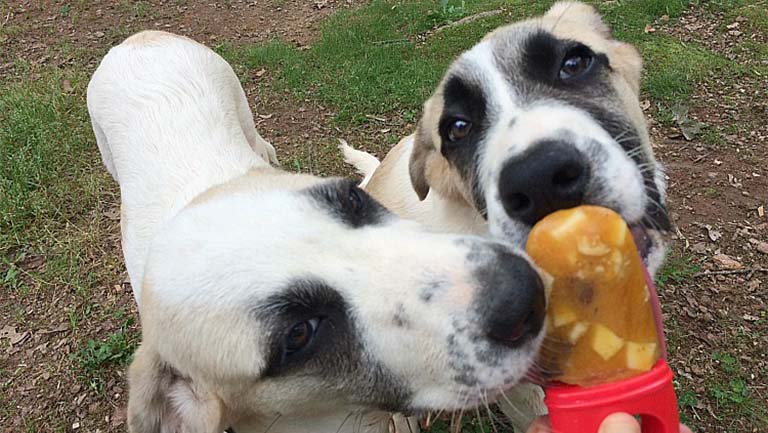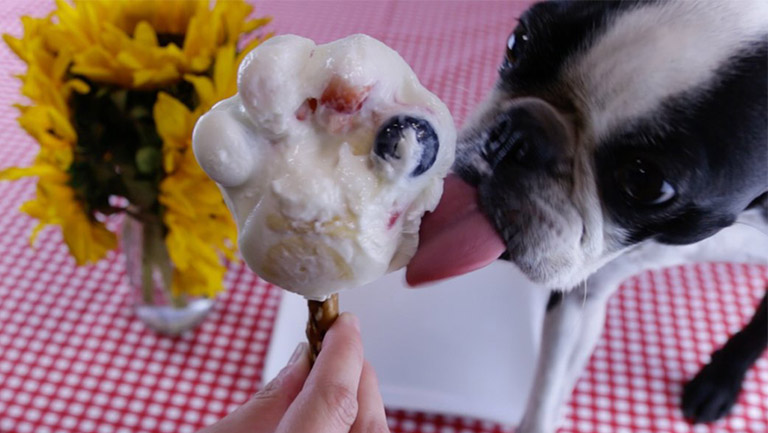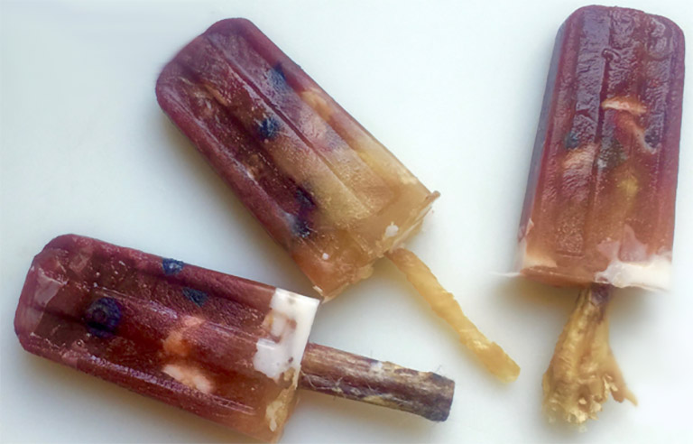 These hearty pops contain superfoods like coconut oil, which can improve your pup’s coat, and blueberries to give your pup a healthy boost. Plus an edible ‘stick’!