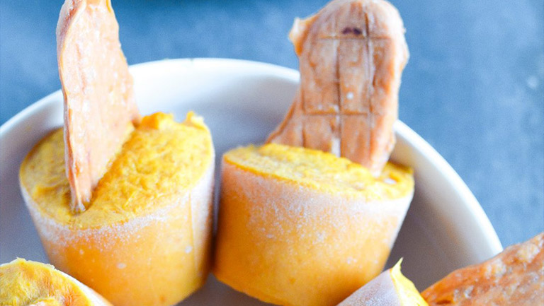 This savory pop contains chicken bone broth, apple and pumpkin, which is a great source of fiber for pups—so it’s tasty and improves their digestive health.