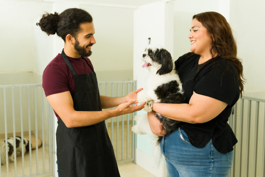 Once you’ve narrowed down your options, you’ll want to take a closer look at the dog daycare facilities with a focus on cleanliness, safety measures, and staff qualifications. During your daycare facility evaluation, you’ll want to make sure that the space is well-ventilated, items like bowls and toys are cleaned daily, and any messes are cleaned up immediately with dog-safe products. The staff should be able to explain their emergency procedures, what safety features (fencing, double-entry doors, etc.) they have, and if/how they conduct temperament assessments for new dogs.
