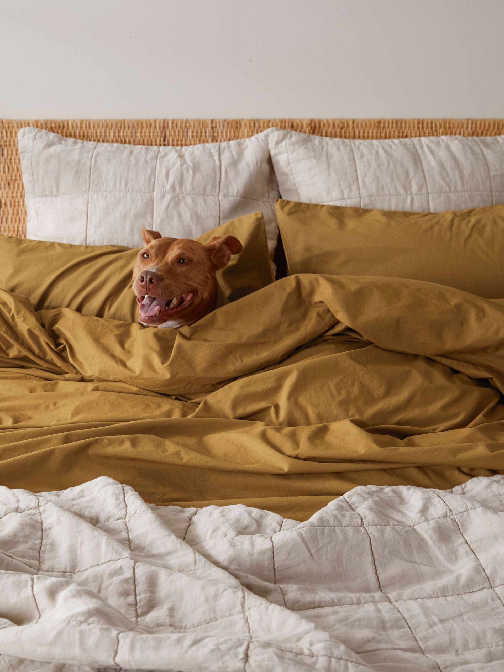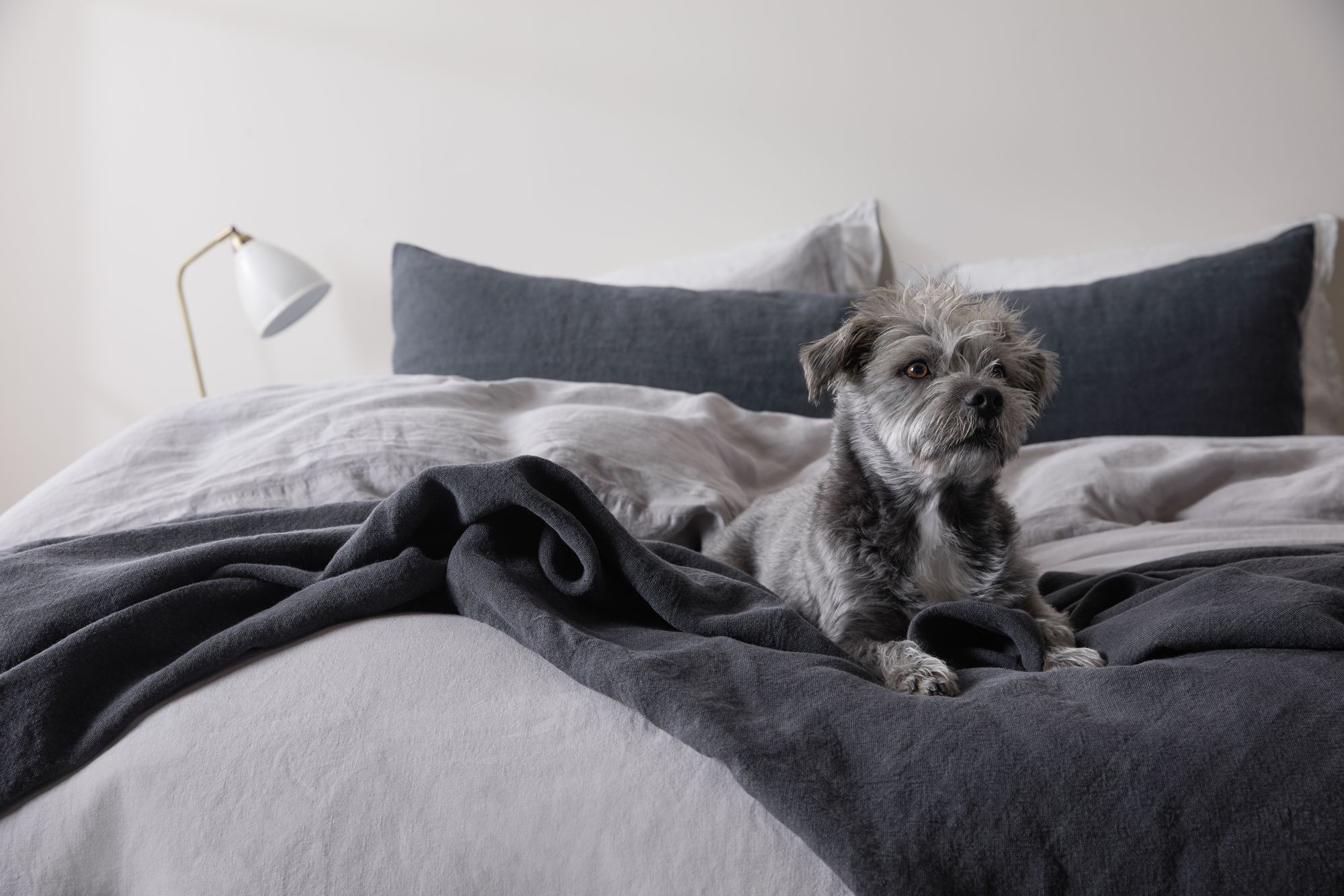 If you and your pup have found the perfect human-to-dog bed ratio then read no further. But if you’re still figuring it out we recommend you take an honest look at how you’re sleeping and don’t hold back when answering if your current setup is really working for you, your partner, and your dog. The truth is, if your sleep is negatively impacted down the line it’s going to have repercussions. According to a study shared by The Bark, people who slept with dogs in their rooms, but not on their beds, reported 83% sleep efficiency — 80% is generally considered satisfactory. If keeping your companion nearby is simply enough for you then the next step is making him or her as cozy as possible. Like you, your dog typically prefers to sleep on a soft, cushy surface — our favorite: the dog bed from Parachute is just that (and bonus: it’s easy to wash)!